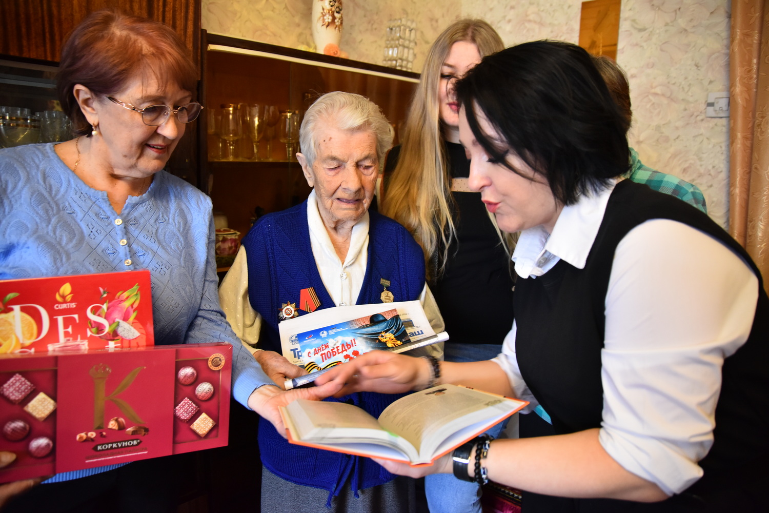 Делегация в составе представителей Совета ветеранов, профсоюзного комитета и пресс-службы АО «Златмаш» посетила Раису Семёновну, чтобы лично поздравить с наступающим праздником и вручить памятный экземпляр книги. Почему это так важно? Дело в том, что именно в этом томе «Истории, рассказанной народом» опубликована статья про нашу уважаемую Раису Семёновну.